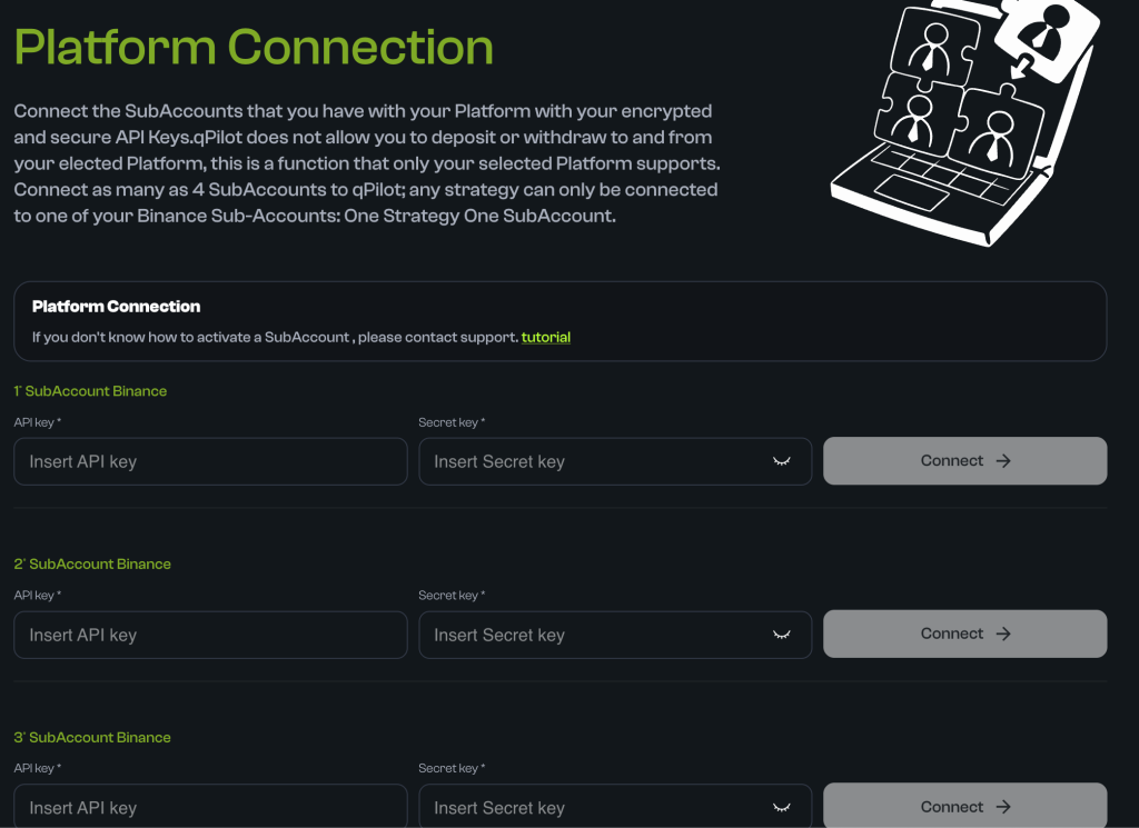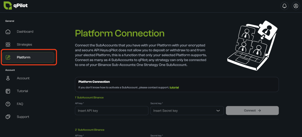 - Do not connect the same sub-account to more than one qPilot slot.
