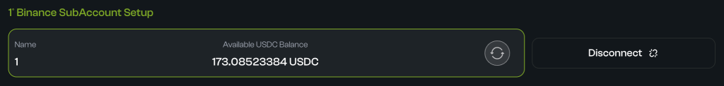- The USDC Balance of your sub-account appears.